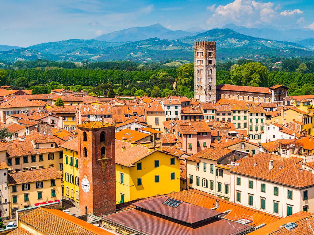 Il modo migliore per visitare Lucca è osservarla dall'alto: percorrendo l'itinerario ad anello sulle mura, salendo sulla Torre Guinigi o salendo i 207 scalini della ancora più alta Torre delle Ore. Da questi punti si ammira uno splendido panorama sui tetti della cittadina toscana.